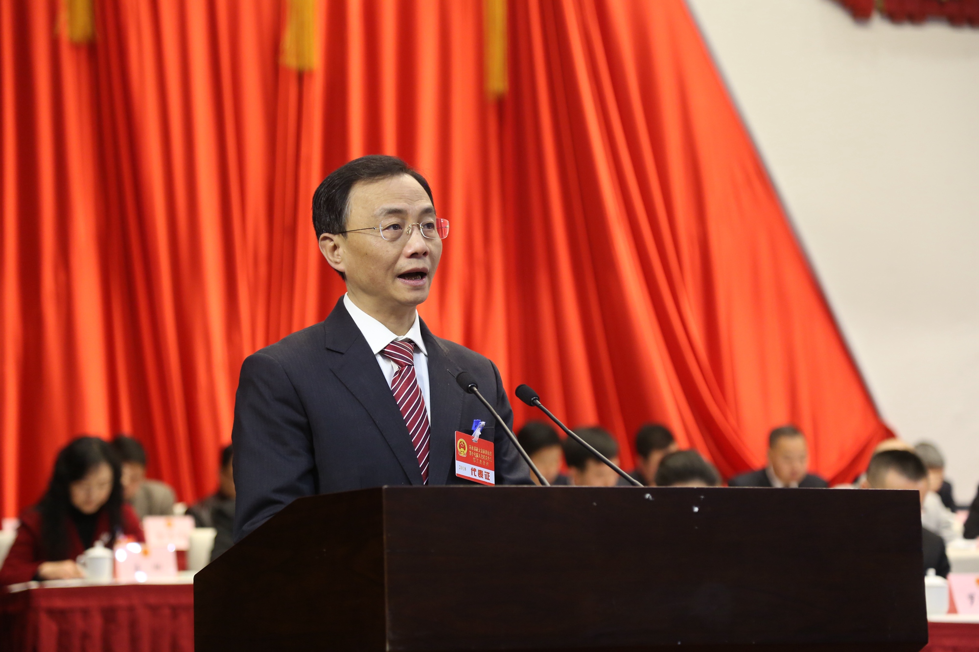 上午9时许,胡勤俭宣布大会开幕。县长石强代表县政府作工作报告。报告分四个部分:2017年工作回顾;2018年目标任务;2018年重点工作;全面加强政府自身建设。