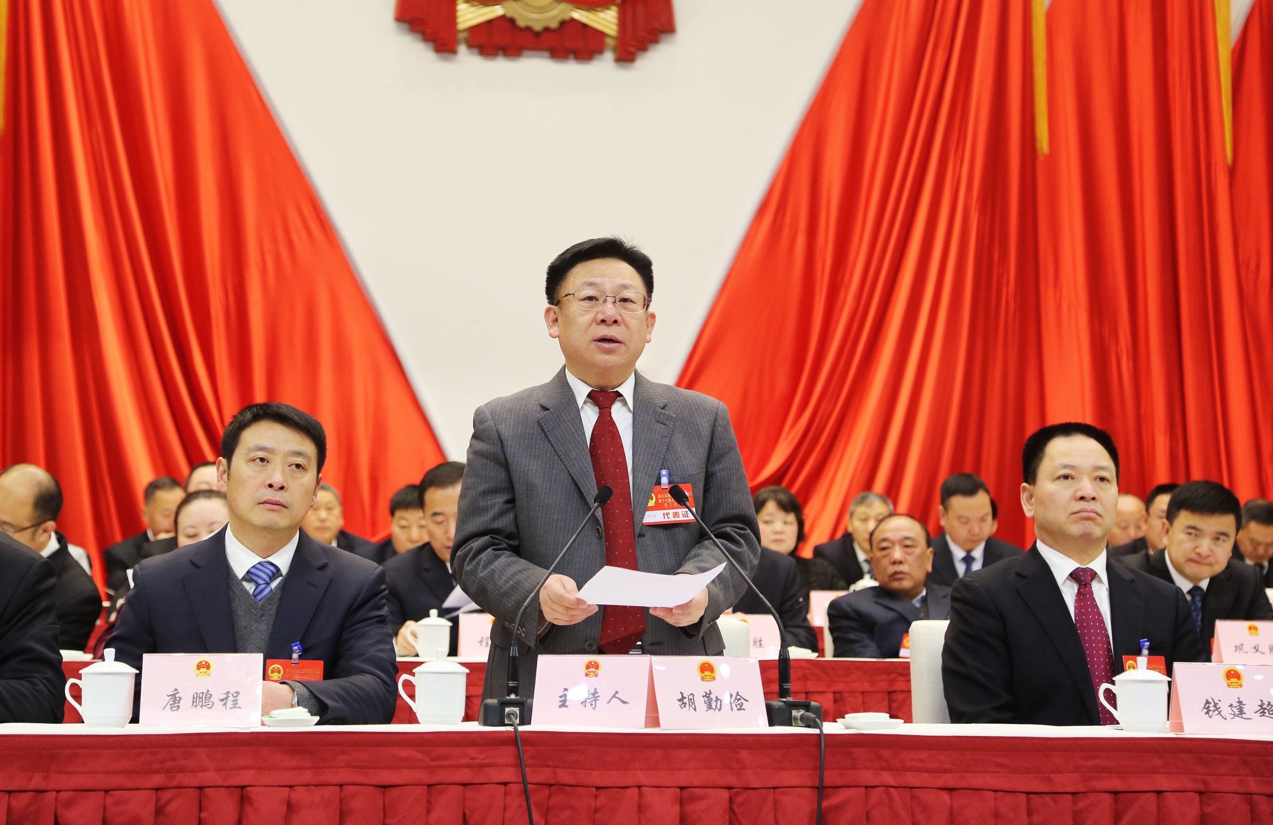 2月7日,执行主席胡勤俭主持大会。 张经纬 摄影